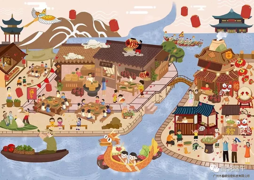 为了寄托哀思,人们荡舟江河之上,此后才逐渐发展成为龙舟竞赛。百姓们又怕江河里的鱼吃掉他的身体,就纷纷回家拿来米团投入江中,以免鱼虾糟蹋屈原的尸体,后来就成了吃粽子的习俗。